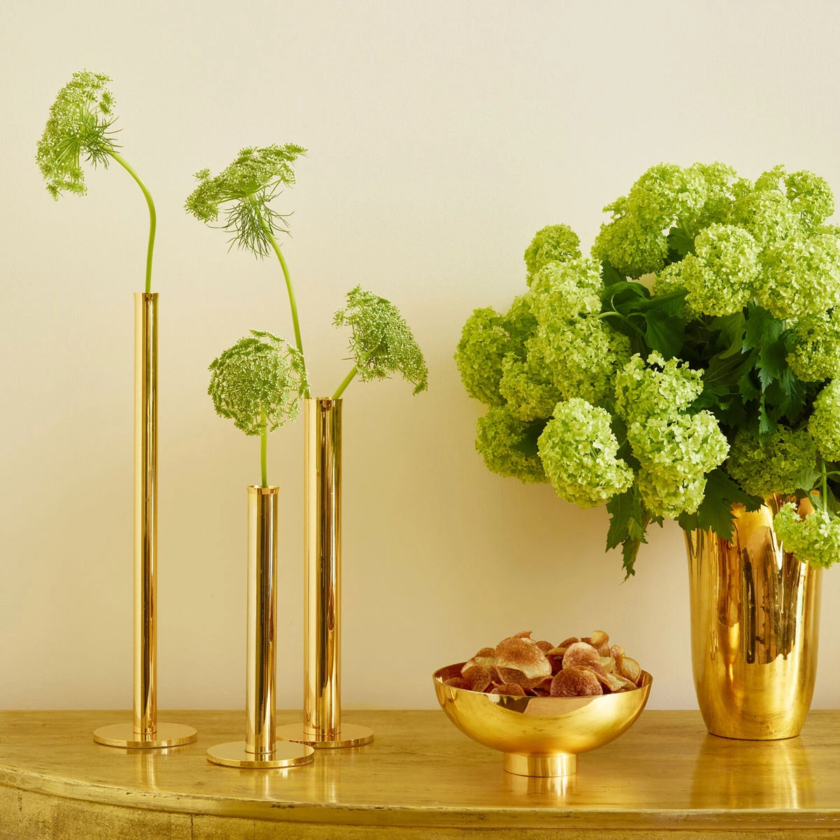 Inspired by midcentury design, the Sintra bowls have a cleansilhouette and comes in three sizes, sold separately, which alsostack beautifully together. Use it to serve snacks such as peanutsand potato chips on movie night or when entertaining. L: 6.3″ W: 6.3″ L: 2.8″ IN Metal Aerin Aerin 811858033931 20120033AE Gold Small Bowl Footed Sintra Aerin