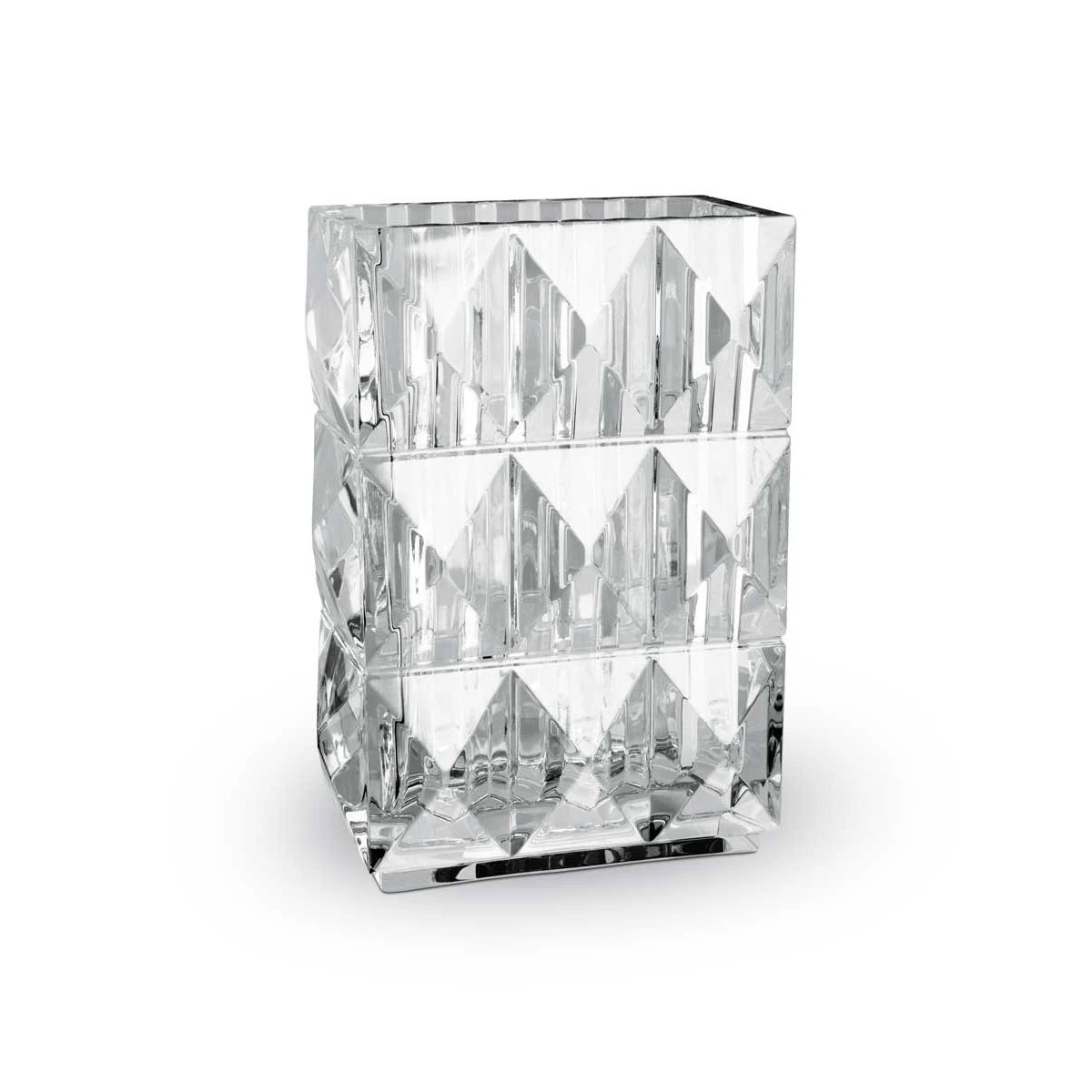 The subtle gradients of precise geometric cuts embody Baccarat Crystal fine craftsmanship: the three-dimensional surface is composed of pyramidal shapes, with a vertical garden motif on the interior. Inspired by Ancient Egypt and its architecture, the Louxor vase created by Thomas Bastide transforms each bouquet into an exceptional composition. H: 7.88″ FR 211 Giftware, Vases and Bowls BACCARAT INC Baccarat Crystal 736415742562 2609993B Clear Vase 8″ Crystal Louxor Baccarat vases