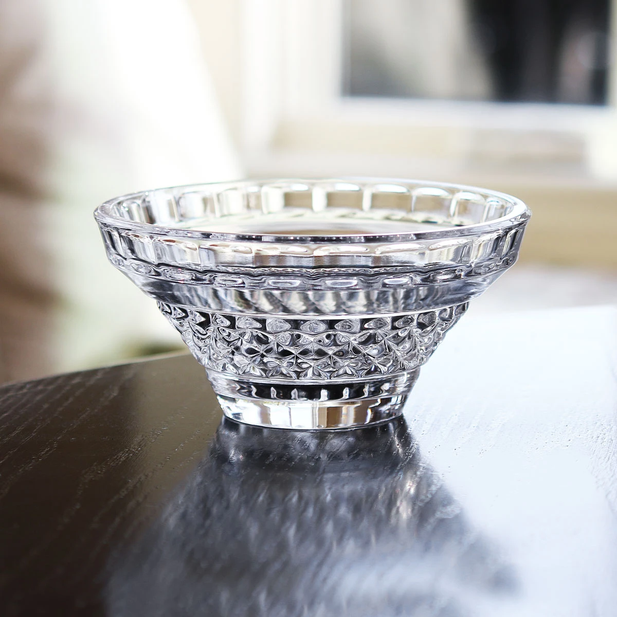 The Cooper pattern extends as we add this beautiful sparkling bowl featuring two horizontal bands of tight diamond cutting. A perfect candy dish, catch all bowl, or for displaying fruit and storing small keepsakes. Makes a great gift!