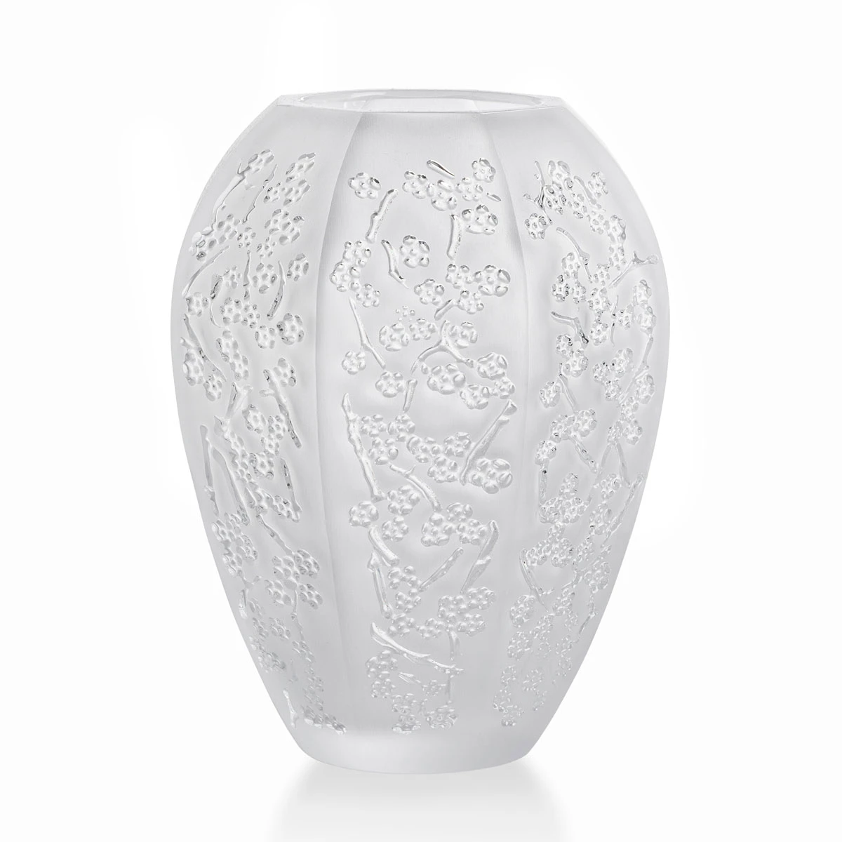 Scintillating on satin-finished crystal, the cherry blossoms of the Sakura vases evoke the universally admired and wondrous blossoming of the Japanese cherry tree. Symbolizing the ephemeral character of beauty and life, each piece invites one to marvel at the present moment. Issued in clear and pink luster crystal in three sizes to mix and match, this decorative piece will highlight any interior. H 5.51″ x D 4.45 FR 211 Crystal Lalique Lalique 0090592884188 10723300 Clear Vase 5.5″ Sakura Lalique