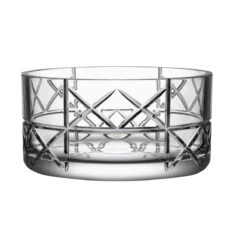 Explicit Checkered Bowl has a cut motif inspired by dried reeds after winter. The bowl is made of thick, clear crystal, making it an elegant design object. Designed by Martti Rytkonen. H: 4.33″ W: 8.78″ TR 225 Crystal RSI Orrefors Kosta Boda 7321646018826 6320811 Bowl 9″ Checks Explicit Orrefors