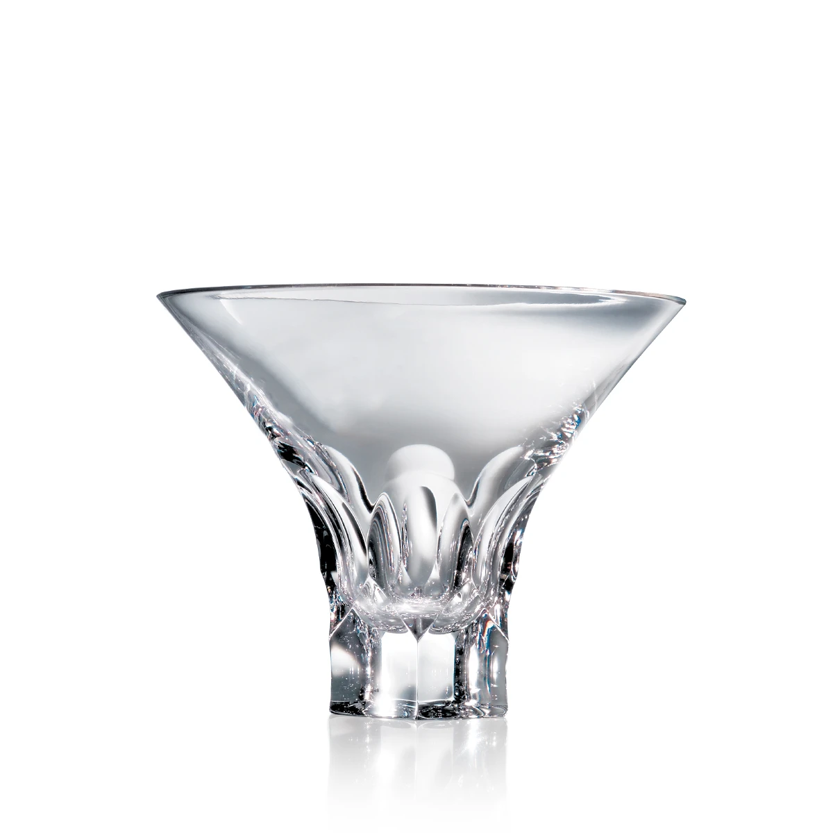 This striking departure from the classic martini stem has a tapering, sculpted base that nestles easily in the hand, whether one is seated or standing. This remarkable vessel combines the inherent heft of pure lead crystal-so comfortable in the palm-with the sculptural precision inherent in Muehling’s nature-inspired designs. The faceted base is painstakingly cut and polished by hand to achieve its remarkable brilliance. H: 3.25″, Cap: 7oz. PT Crystal Steuben Steuben 533653 2811VAA Single Glass Martini Stemless Tortoise Steuben
